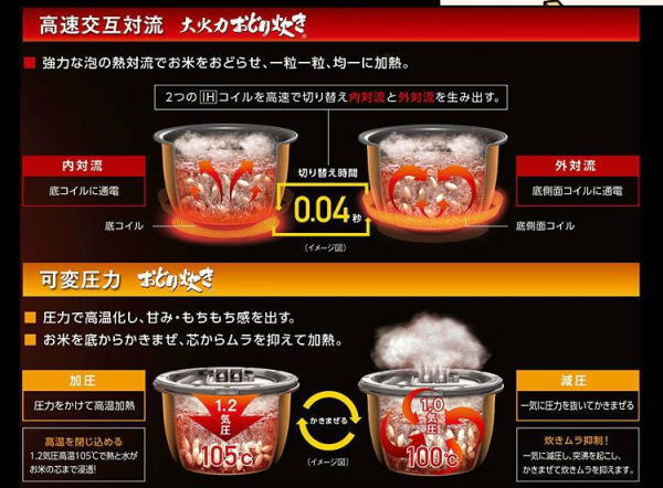 パナソニックの最新機種「Wおどり炊き」SR-SPX7シリーズには、かまど炊きを超える究極の美味しさを目指した「Wおどり炊き機能」、米の個性やおいしさをとことん引き出す「銘柄炊き分けプログラム」があるので、こだわりの炊き技が簡単にでき、米の本当のおいしさを味わえます。